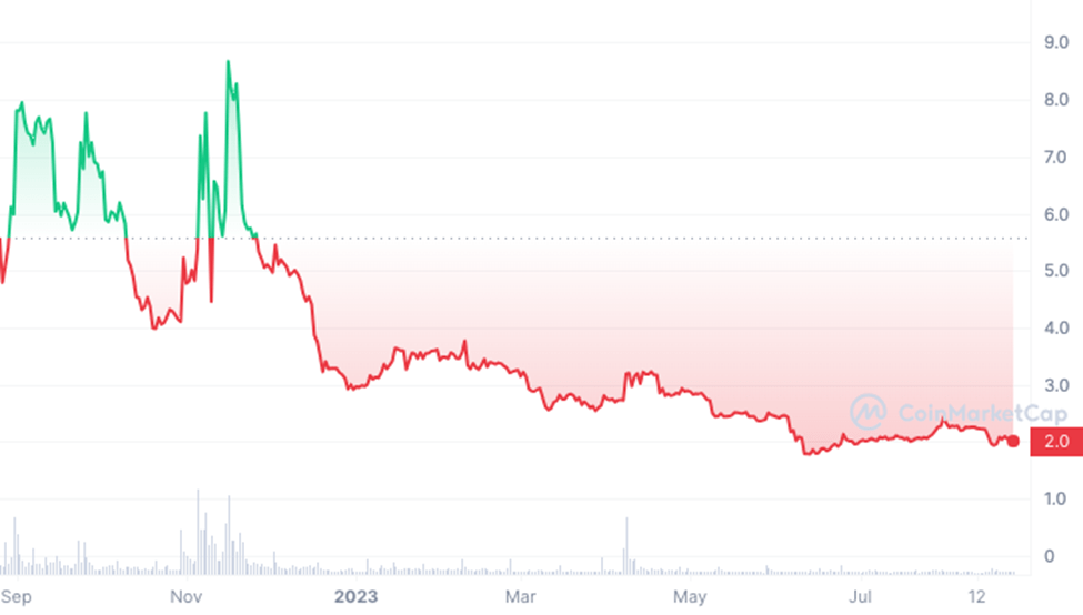It is definitely no surprise that the Manchester City Fan Token is on this list. As one of the most successful teams in recent times, the club’s success did not spread to its token. According to CoinMarketCap, CITY’s value had dropped by 86.13%.