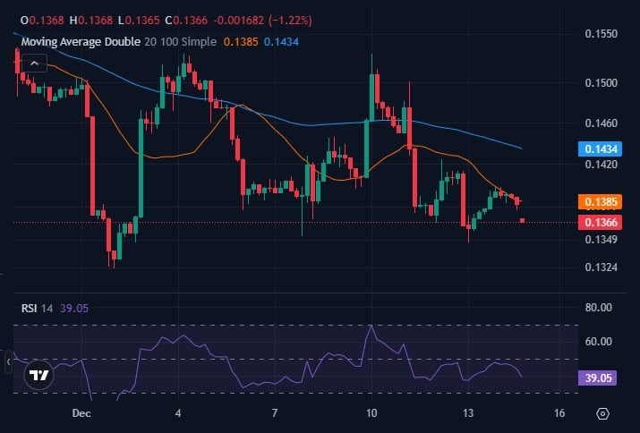 Shiba Inu is trading within a wedge after a month of muted volatility, reflecting indecisive price action during a slow weekend. Despite sitting near key levels, market enthusiasm remains subdued as the RSI stays neutral.