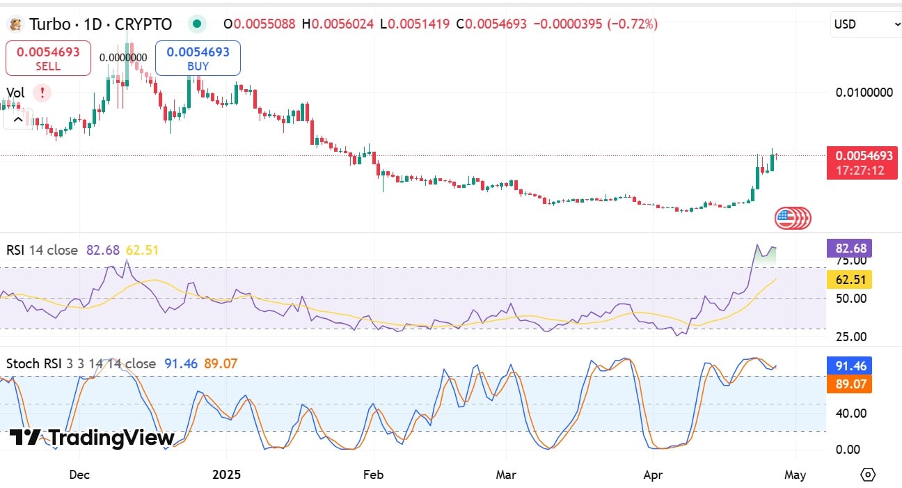 Since the 22nd of April, TURBO has skyrocketed over 172% and now boasts a market cap of $370 million. With these massive gains, the question is what’s driving the uptrend?