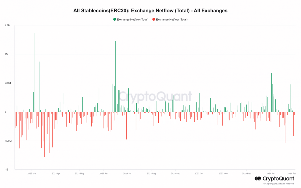 The cryptocurrency industry has witnessed a significant change in the movement of stablecoins, offering valuable observations into the evolving dynamics of the market. Recent data from IntoTheBlock and CryptoQuant has shown a surge in stablecoin inflows into exchanges, reaching record highs in January.