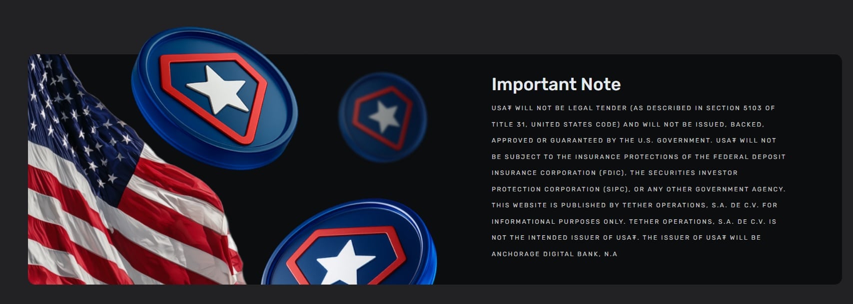 According to important information published on the official website of USAT, the US dollar-pegged stablecoin that Tether will issue exclusively for the US market, USAT is not insured by any government agency.