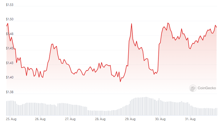 As of the latest data, ApeCoin’s price currently hovers at $1.48 according to CoinGecko, reflecting a 0.7% decline over the past 24 hours. This downtrend is further underscored by a 0.8% slump observed over the course of the past seven days. Despite such precarious circumstances, analysts are identifying potential bright spots within the gloomy horizon.