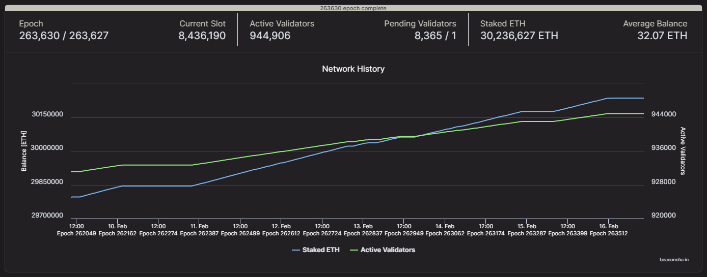The numbers are impressive: a whopping 25% of all circulating ETH, or 30.2 million coins, are now locked in staking contracts. This represents a significant surge of 600,000 ETH deposited between February 1st and 15th. And with an annualized reward rate of 4%, the incentive to join the staking party is only growing stronger.